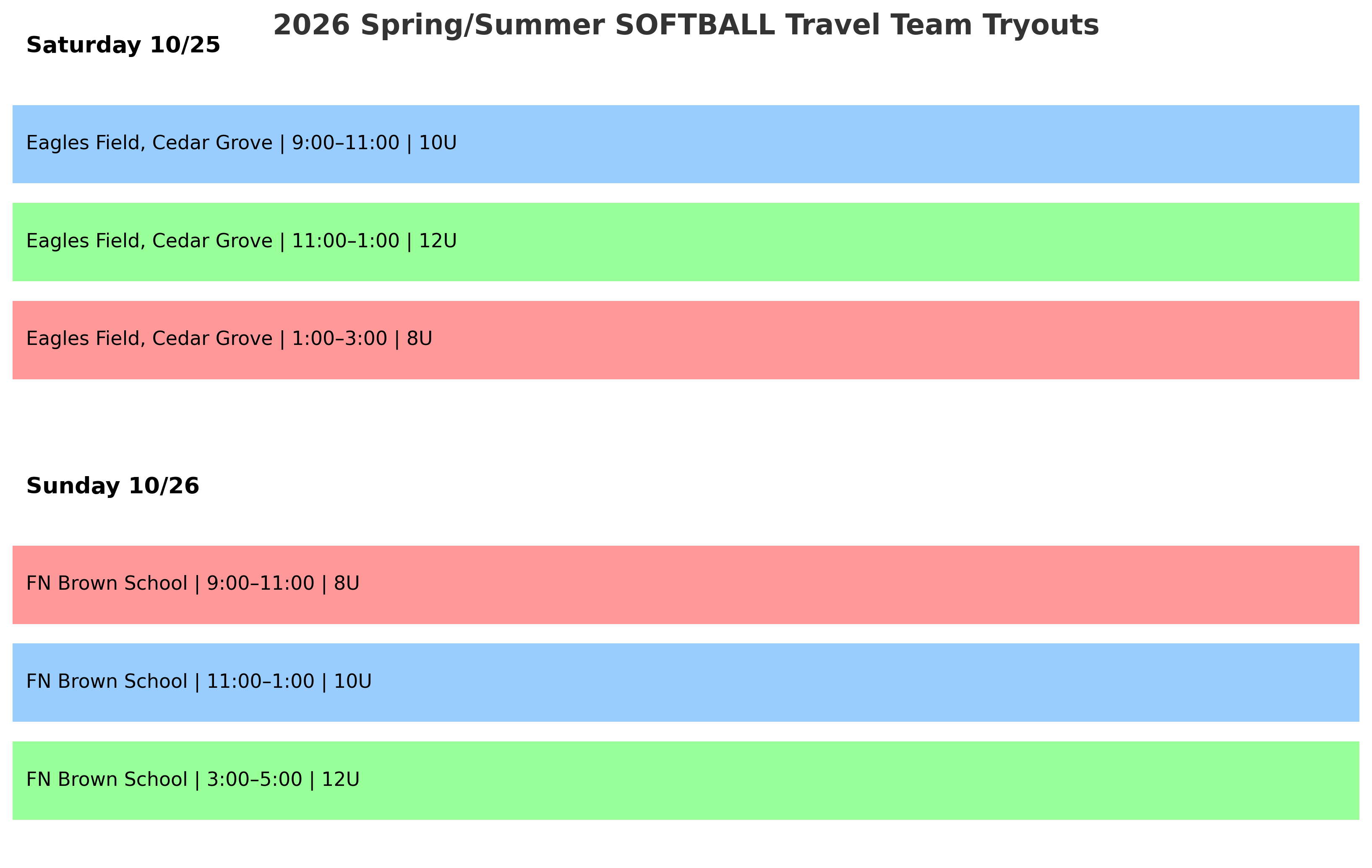 2026 Spring/Summer 10U Travel SOFTBALL Tryouts Softball · Any Travel